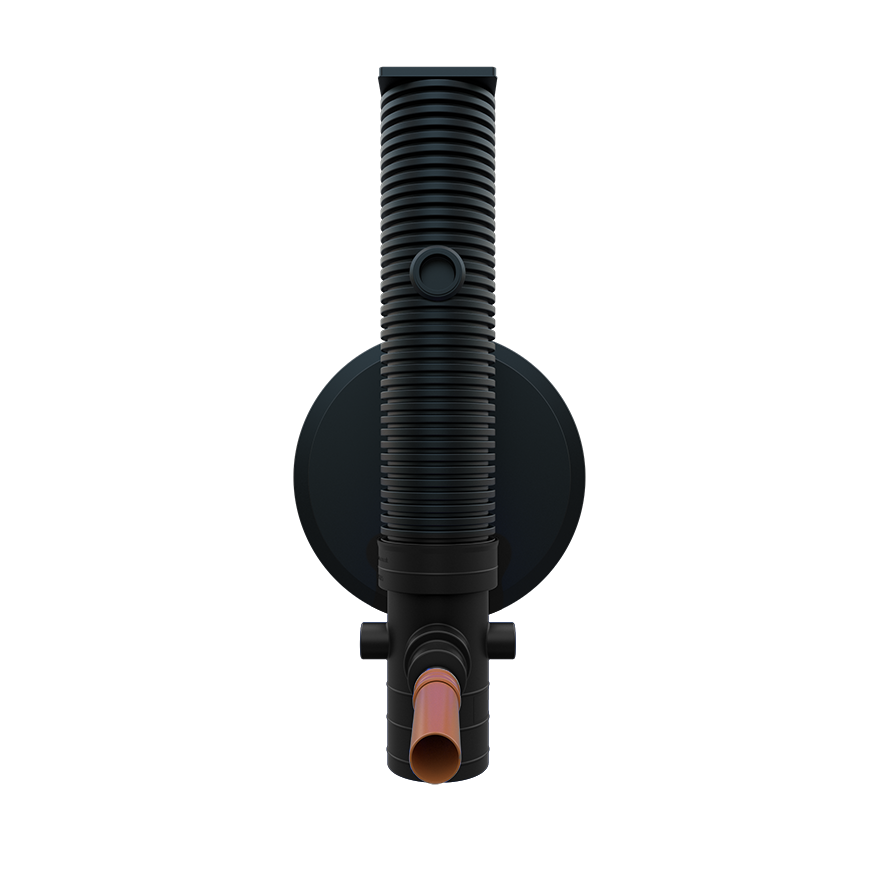 The Flow Control Chamber connections are 110mm or 160mm outlet connections with a 160mm inlet connection from the outlet at 0° and inlet at 180° – available as either an Oriflo 300 or Vortiflo 300 chamber.